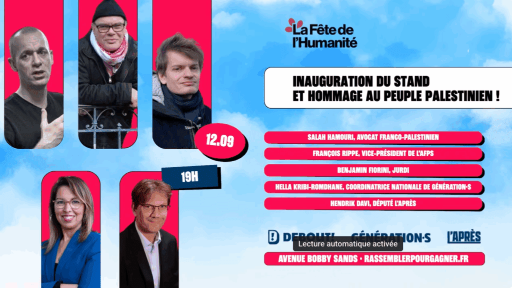 Hommage au peuple palestinien – inauguration du stand de l’APRÈS – Huma 2025