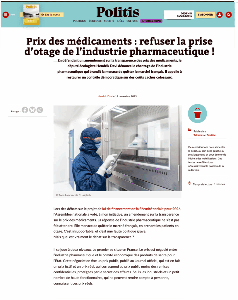 Prix des médicaments : refuser la prise d’otage de l’industrie pharmaceutique !