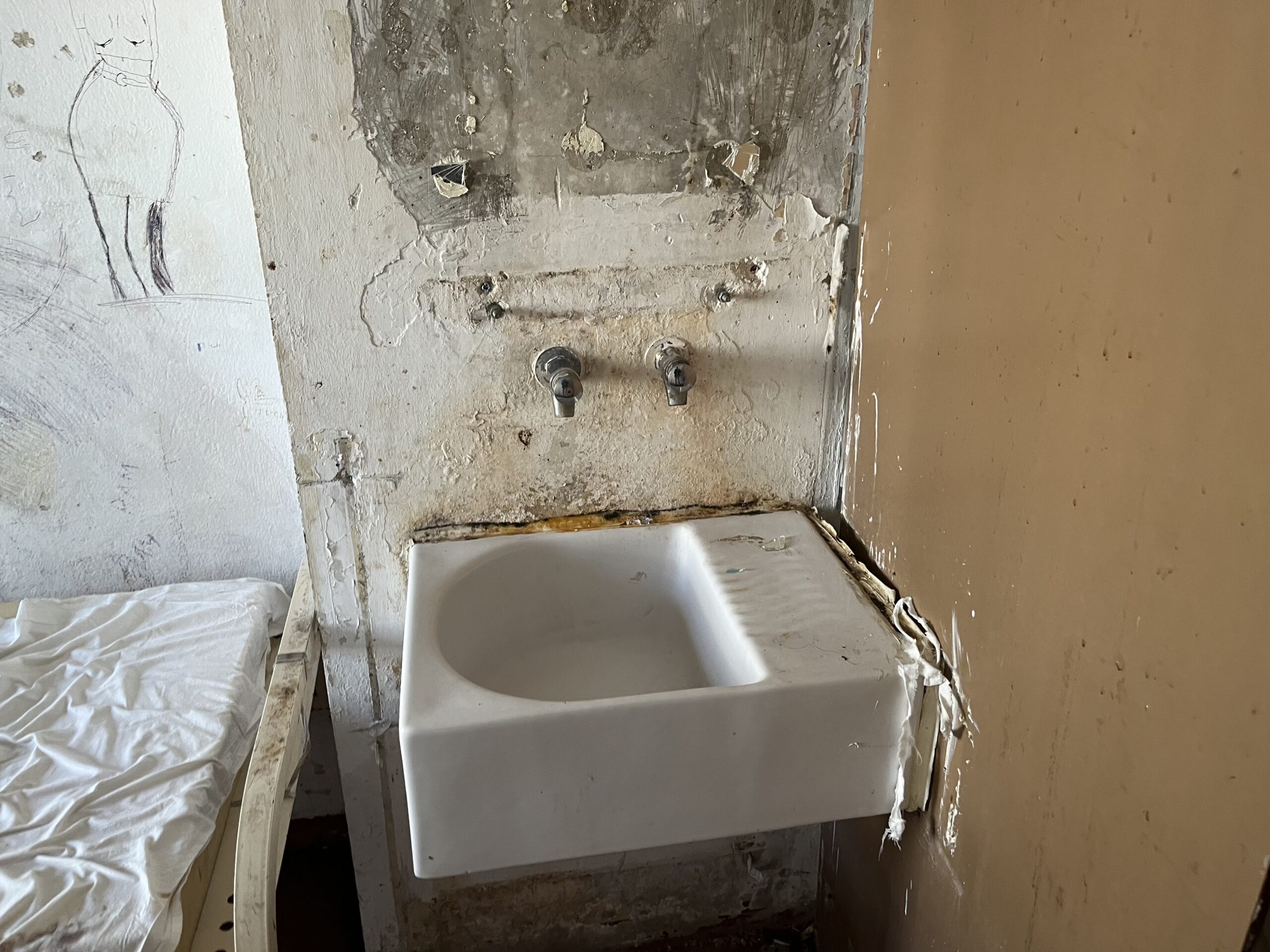 Lors de notre visite, 80 places sur 136 étaient occupées. Malgré le nombre de cellules vides, il nous a fallu insister auprès de l’administration pour y avoir accès. Ici, on parle de “peigne” pour décrire les couloirs où se succèdent ces cellules. Pas de suroccupation comme dans les prisons, mais un univers tout de même carcéral très marqué. La cour par exemple, très petite, est recouverte de grillages aux murs et au plafond. Les retenus ne peuvent circuler librement, les portes verrouillées se succèdent les unes après les autres, et les activités sont inexistantes.