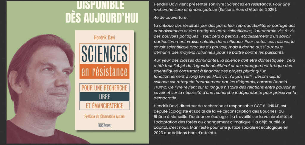 J’y ai présenté mon nouveau livre Sciences en résistance – Pour une recherche libre et émancipatrice.